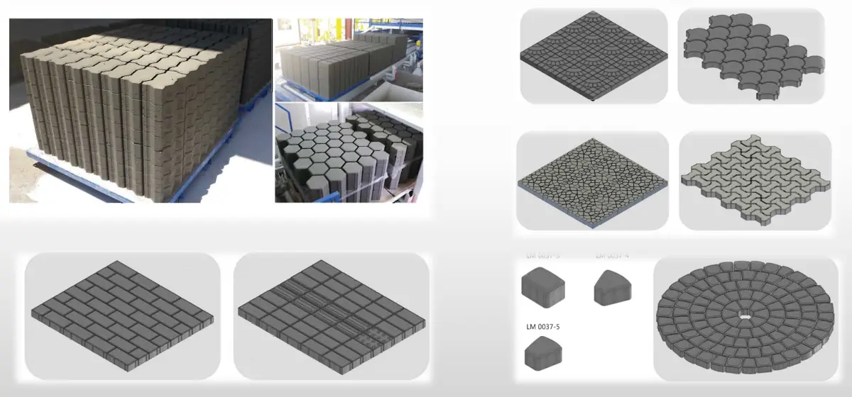 2. قوالب طوب الرصف: تستخدم بشكل رئيسي لإنتاج طوب الرصف، والذي يمكن استخدامه في المناطق العامة مثل الأرصفة والساحات.